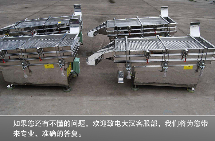 以上就是小編為您帶來(lái)的藥粒分級(jí)不銹鋼直線篩價(jià)格相關(guān)新聞,層數(shù)、材質(zhì)、型號(hào)的選擇都與價(jià)格有著密切相關(guān)!如果您還有不懂的問(wèn)題,歡迎致電大漢客服部,我們將為您帶來(lái)專(zhuān)業(yè)、準(zhǔn)確的答復(fù)。