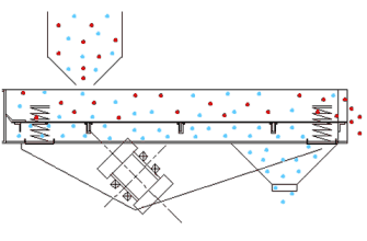 物料從給料機(jī)均勻地進(jìn)入篩分機(jī)的進(jìn)料口,在振動(dòng)電機(jī)的激振下,向出料口方向邊跳動(dòng)邊篩分,通過多層篩網(wǎng)篩分出數(shù)種產(chǎn)品和不合格的篩上、篩下物,分別從各自的出口排出,流入料倉或盛料筒。